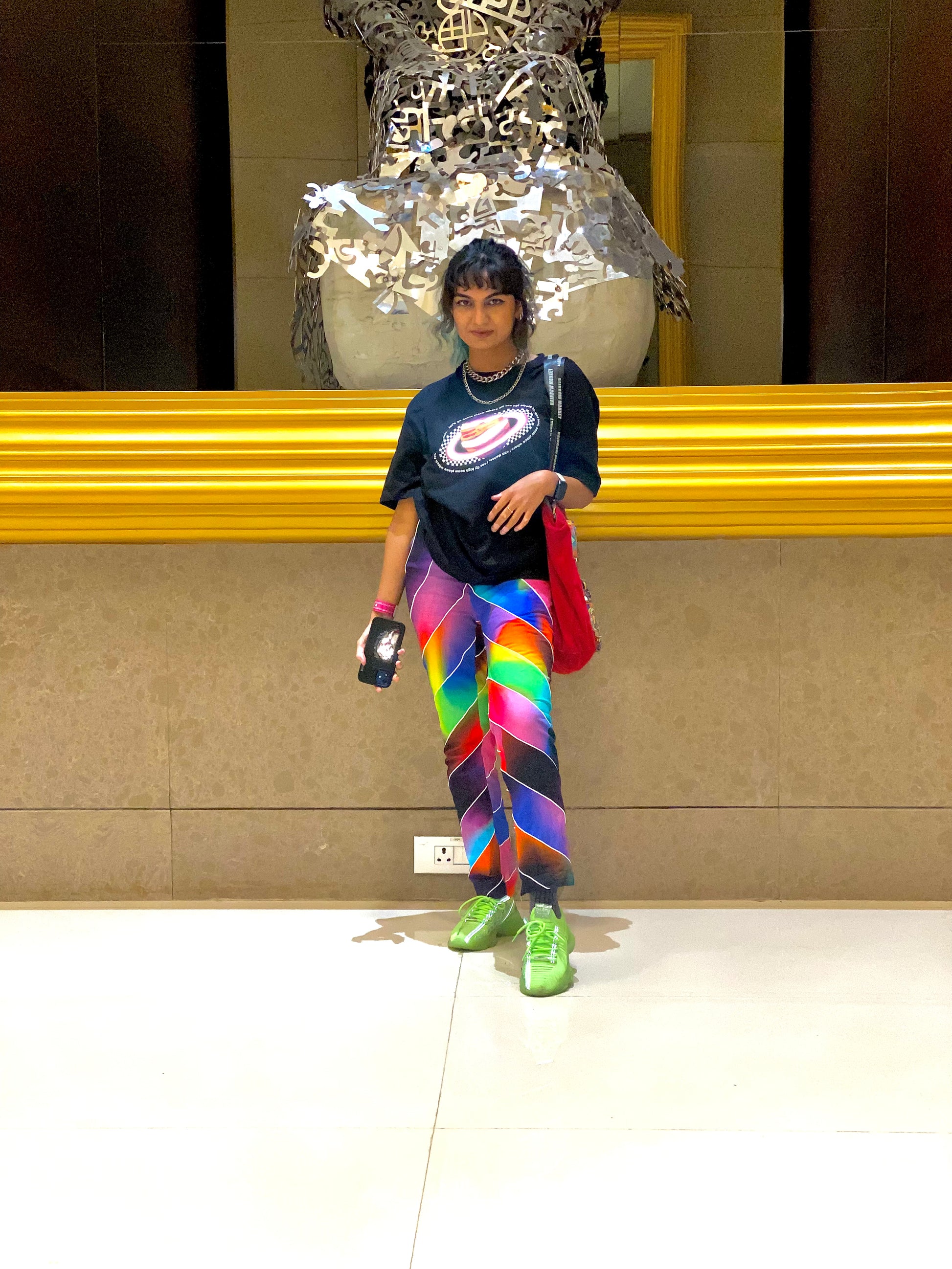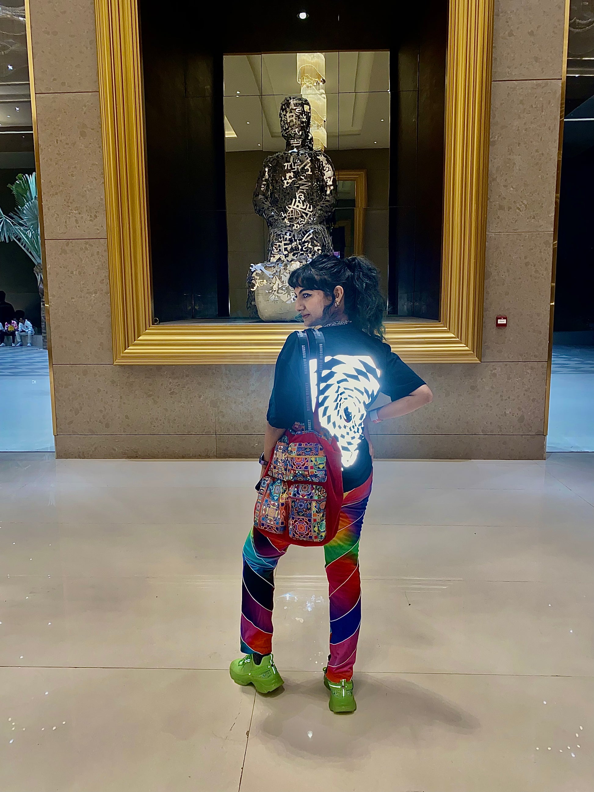 Reflective t-shirt on the front and back.